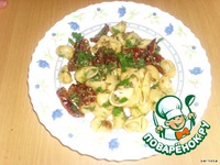Как макароны отварить знают все. Макароны кладём в чашку, добавляем горкой чесночные помидоры, зелень, сок лимона, соевый соус и хорошо перемешиваем. И раскладываем по тарелкам. |