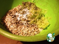 Смешать кабачок, сыр, прованские травы, соль, хлопья, яйцо и пахту. Дать постоять минут двадцать. |