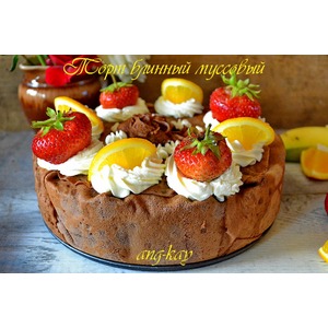 Сверху мешочков кладем оставшиеся фрукты и заливаем муссом. |