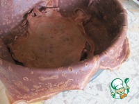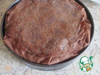 Форму выстелить блинами внахлест. Диаметр моей формы 20 сантиметров. Края блинов должны свисать. На дно тоже положить блин. Нам нужно, чтобы не было пробелов. |