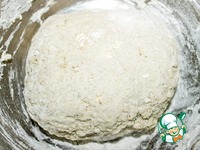В глубокую миску просеиваем оба вида муки, добавляем овсяные хлопья, пажитник, имбирь, сахар, соль и масло. Замешиваем тесто. |