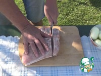 Разрежьте мясо вдоль ребер на порционные кусочки. |
