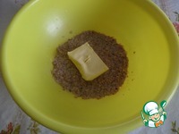 Добавляем в чашку к хлопьям сливочное масло. Перемешиваем. |
