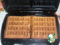 Закрываем вафельницу. Вафли готовятся 2-3 минуты. Из указанных ингредиентов получается 5 шт. вафель размером 10х10 см. |