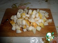 Выкладываем груши. Перемешиваем. |