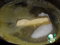 В разогретую сковороду выкладываем сливочное масло и сахар. |