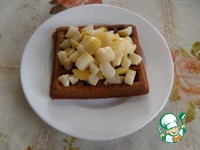 На тарелку кладем испеченную вафлю. На вафлю выкладываем 1-2 ст. л. кубиков груши. Поливаем медом и посыпаем корицей. |