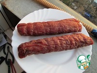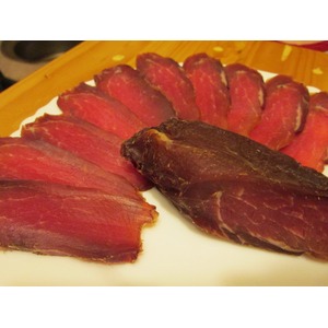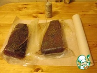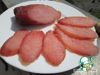 Ну вот, прошло время, мясо потеряло 30%, у меня чуть более даже, забыл про него. Достаем и думаем что же там у нас вышло. |
