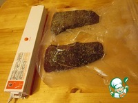 Вот через сутки переупаковываю, видите сколько влаги мясо отдало. |