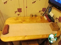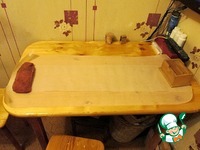 Раскатываем пергамент на столе нужной длинны, у меня метр. |