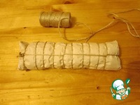 Потом получившуюся «конфету» туго обвязываем суровой нитью. Поперек и вдоль. |