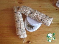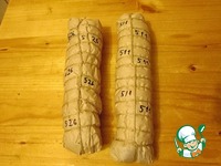 Теперь очень нужный и ответственный этап, а именно взвешивание. От данного веса будем считать усушку продукта. Вес прямо на кусках пишем. Продукт будет готов когда потеряет 30% веса. |