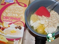 К шоколаду добавляем творожный сыр, яйцо и овсяные хлопья Мистраль. Все хорошо перемешиваем. |