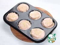6. Выкладываем в формочки пластины картофеля, затем пластины окорока (по 2 шт на формочку) и закрываем картофелем. |