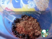 Всыпьте к овсяным хлопьям, черносливу и чернике 1 столовую ложку с небольшой горкой какао-порошка. |
