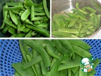 Стручковую фасоль помыть, нарезать на несколько частей, отварить в подсоленной воде до мягкого состояния, около 5-7 минут. Переложить в ледяную воду на 4-5 минут. Затем откинуть фасоль на дуршлаг. |