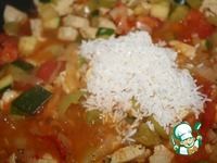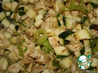 Затем идут кабачки и из специй орегано, сухая мята и у меня был еще шафран. Продолжаем обжаривать еще около 6 минут. |