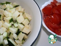 Кабачок нарезаем кубиком и помидоры произвольно. |