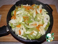 Лук, морковь, чеснок нарезать, обжарить на растительном масле 2-3 минуты. |