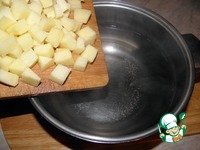 В кастрюлю налить воду, довести до кипения, опустить нарезанный картофель. Довести до кипения. |