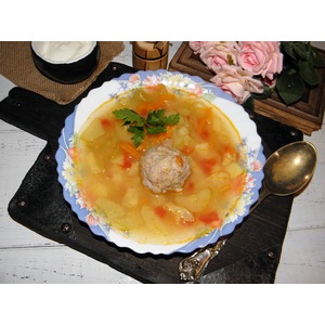 Описание: Очень легкий суп такой с фрикадельками у нас! И, конечно, овощной! Для обеда в самый раз! Не готовить нет причины! Всем нужны так витамины!