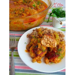 Описание: Котлеты из двух видов фарша в насыщенном овощном соусе из помидор, перца, кабачков и баклажан станут дополнением к любимому гарниру для сытного, семейного ужина! Спасибо за идею рецепта кулинару sergey_pozhar!