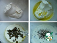 Готовим заправку-соус. Смешать сметану, оливковое масло, сок лимона, каперсы (если у вас крупные - измельчите), перемешать и добавить свежемолотый черный перец. |