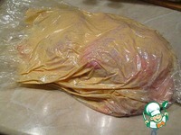 Выложить курицу в рукав для запекания. Туда же вылить соус и тщательно промазать курицу. Оставить мариноваться минимум на 30 мин. |