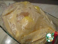 Картофель почистить и уложить в рукав вместе с курицей. Рукав плотно закрыть и выложить в жаропрочную посуду. |