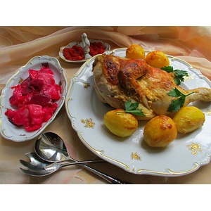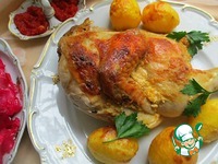Описание: Острая, ароматная, пикантная курица, запечённая в рукаве вместе с картофелем. Совсем не хлопотный рецепт сытного, вкусного ужина. Попробуйте! Картошка получается бесподобная.