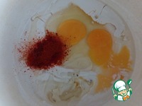 В активировавшиеся дрожжи вводим яйца, копченую паприку и масло, перемешиваем. |