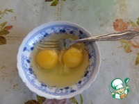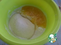 В чашку к набухшим отрубям добавляем сахар и взбитые яйца. Хорошо перемешиваем. |