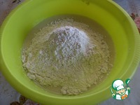 В чашку просеиваем муку с содой. Хорошо перемешиваем. |