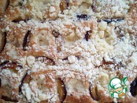 По желанию посыпаем штрейзелем, для которого необходимо смешать все ингридиенты в крошку. Если забыли, ничего страшного, все равно вкусно. Я забыла и уже почти поставила противень в духовку. |