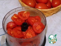 Помидоры вымыть, нарезать произвольно и сложить в чашу блендера. |