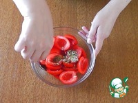 Соединить в миске помидоры и маринад, осторожно перемешать. |