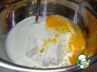 В емкость выложить творог, влить кефир, добавить сметану и яйца. Желательно чтобы продукты были комнатной температуры. |
