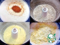 Измельчённые хлопья высыпала в жидкость. Насыпала муку, соль, ванильный сахар. Отделила белки от желтков. Желтки добавила в тесто. |