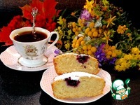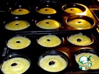 Формы поставила в разогретую духовку до 180 градусов. Как только тесто поднялось, в центр каждого кекса положила по ягоде черники. |