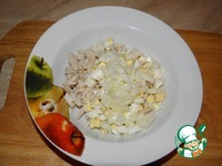 Лук мелко нарезать, если лук белый, лучше всего его будет обдать кипятком для удаления горечи, или замариновать немного соль+сахар+ лимонный сок. |