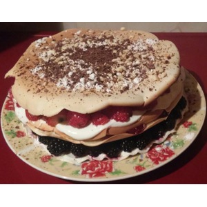 Накрываем последним блином, посыпаем рубленным миндалем, сахарной пудрой и шоколадной стружкой. |