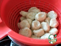 Разделать тесто на колбаски, нарезать маленькими кусочками и чуть их сплющить в таблеточки. |