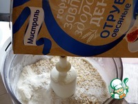 В чаше комбайна пробить до крошек просеянную муку, соль, сахар, отруби и оба вида масла. Понемногу вливая молоко, пробить до собирания теста в шар. |