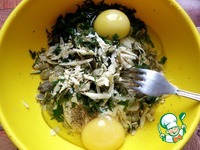 Для начинки сыр натереть на крупной терке, любимую зелень мелко нашинковать. Смешать все с яйцами, сметаной и горчицей, немного посолить и добавить размятые в ладонях тыквенные семечки. |