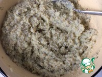 Пшенные хлопья залить кипятком по инструкции на пачке. 3/4 грибов, картофель и 1 луковицу пропустить через мясорубку. Смешать с пшенной кашей, посолить, поперчить. |
