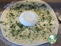 С второй половинкой теста проделываем такую же процедуру, только в место тарелки в центр кладём нашу первую заготовку |
