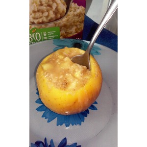 Помещаем начинку в яблоко и ставим запекать в микроволновку на высокой мощности примерно 3-4 минуты. |