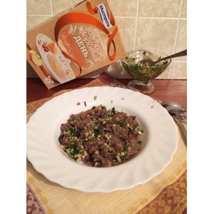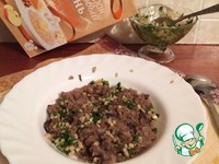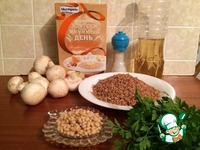 Описание: Рецепт приготовления каши из гречневых хлопьев, грибов в соусе из ядер кедровых орехов и петрушки.