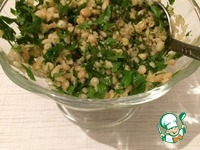 Смешать в посуде растительное масло, рубленую зелень петрушки и кедровые орехи. |