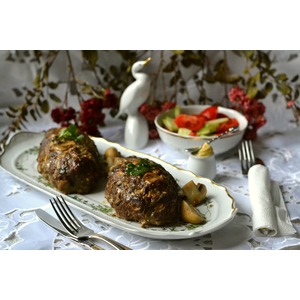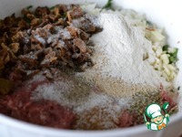 В большой миске смешать нарезанные грибы, фарш, лук, чеснок, петрушку, майоран, тмин, соль, яйцо, муку и панировочные сухари. Хорошо перемешать рукой. |